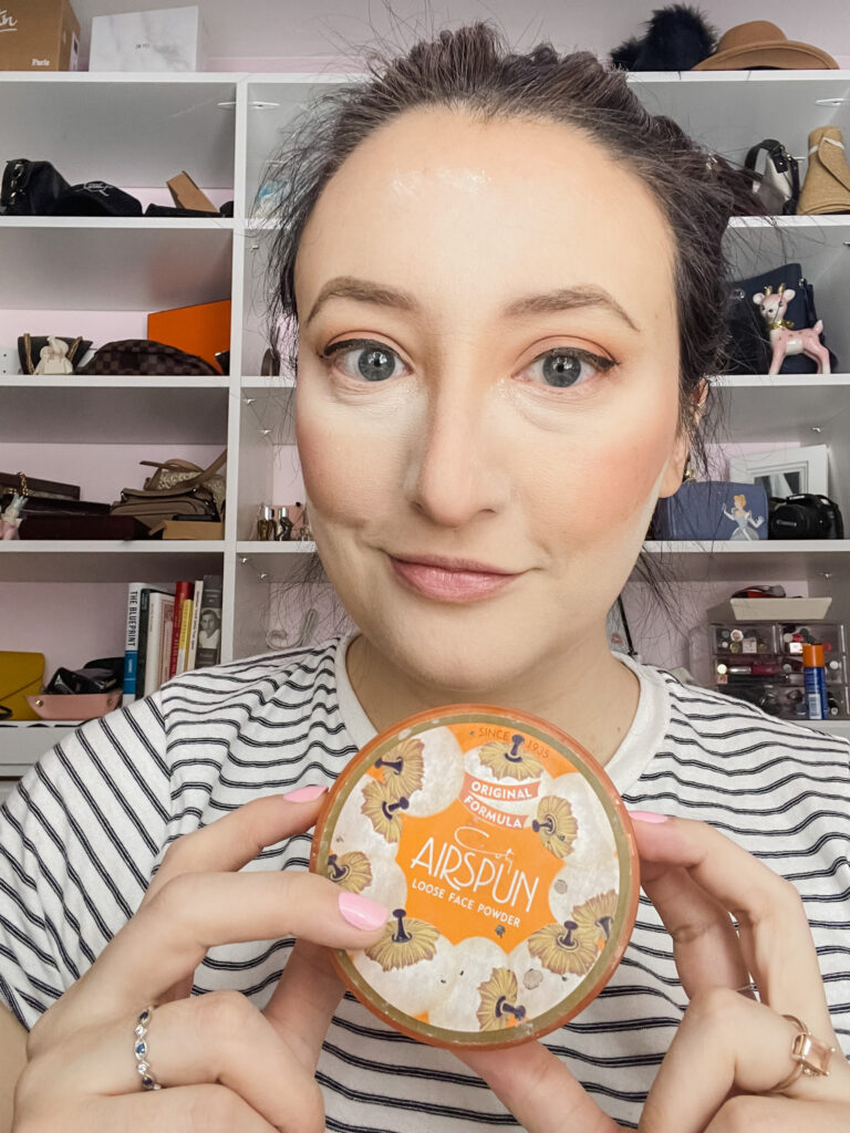 My products are also very similar to Jen’s. The biggest difference is that I use the “Extra Coverage” Translucent Power from Coty.