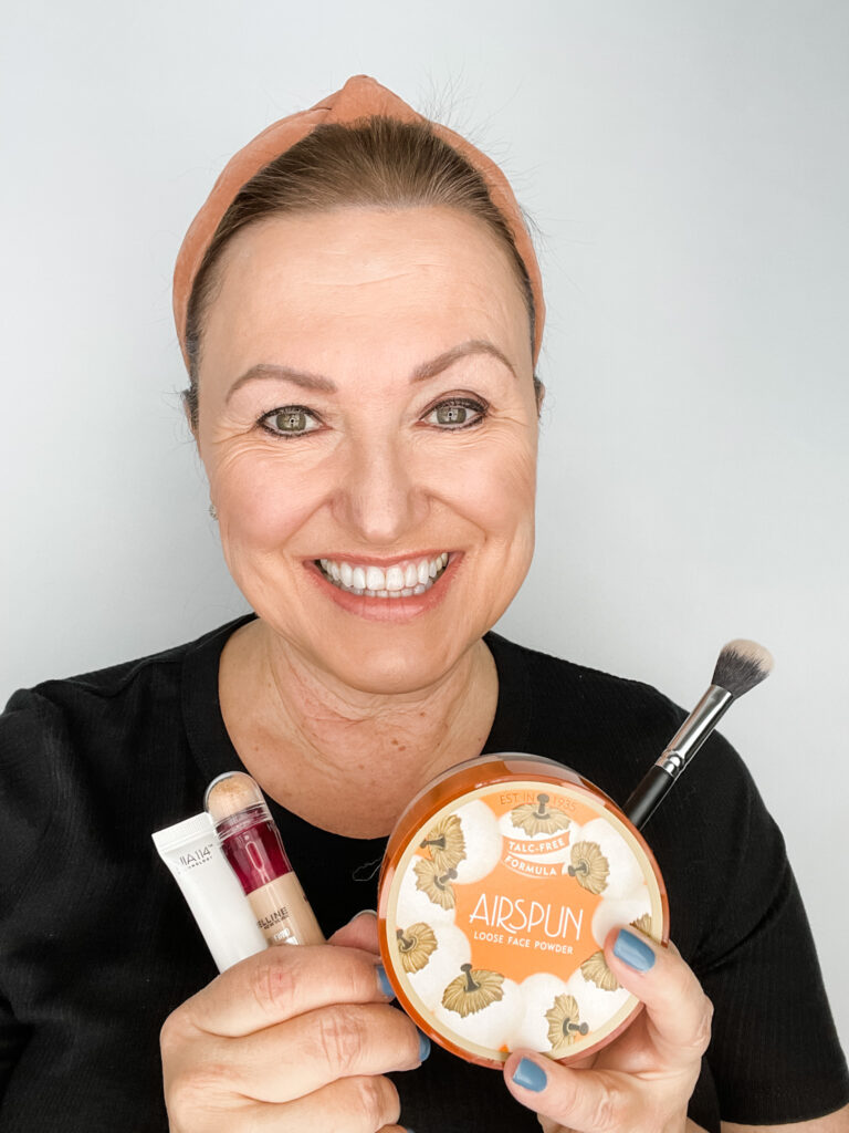 The reason that Jen and I chose baking makeup for “Beauty At Any Age” is because we wanted to debunk any myths that you can’t bake your makeup after a certain age. If you’re 50+ like me, you may feel like baking may actually highlight any wrinkles that you have around your eyes, but that’s not true. Baking makeup is for anyone, at any age, who wants a finished, bright makeup look.