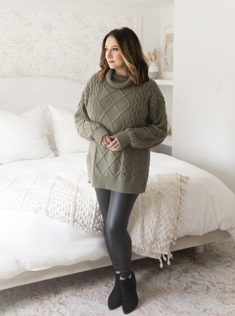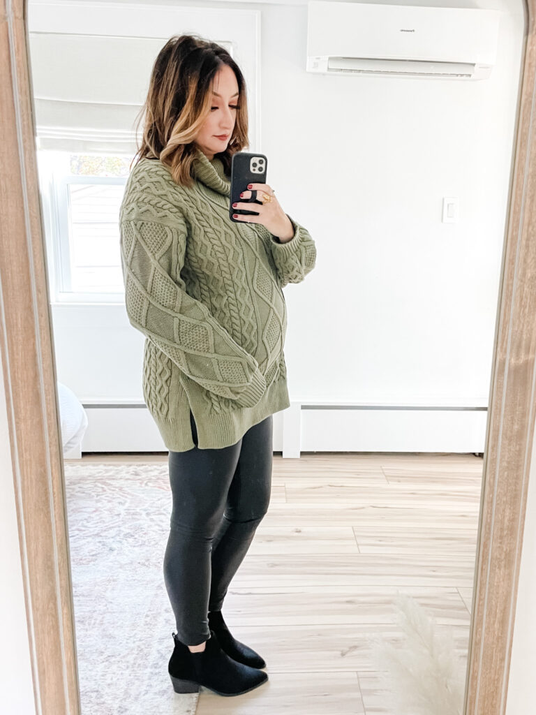 Luckily, winter and fall are some of the easiest seasons to hide your growing baby bump! Baggy sweaters are going to be your best friend, and luckily they’re in style!