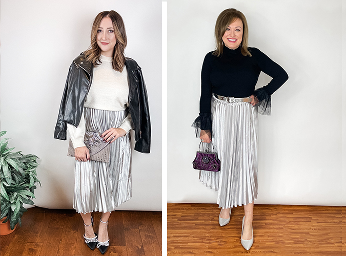 Welcome to “How to Wear it at Any Age Volume 23”! Our theme for this edition is “holiday style”. We’ve got an amazing metallic pleated skirt, a pearl/rhinestone top and a feminine off the shoulder sweater. Three different styles so…