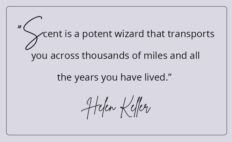 Many of us know the science. Of all the senses, the sense of smell is the most effective at stimulating memories. The science behind it is pretty simple. When you smell something, the sensation starts at your nose and then travels to the amygdala and the hippocampus, until it ultimately arrives at your thalamus. The amygdala creates emotions and the hippocampus is where your memories are stored. That means that every scent you smell passes through the memory and emotion parts of the brain first before you actually smell it.