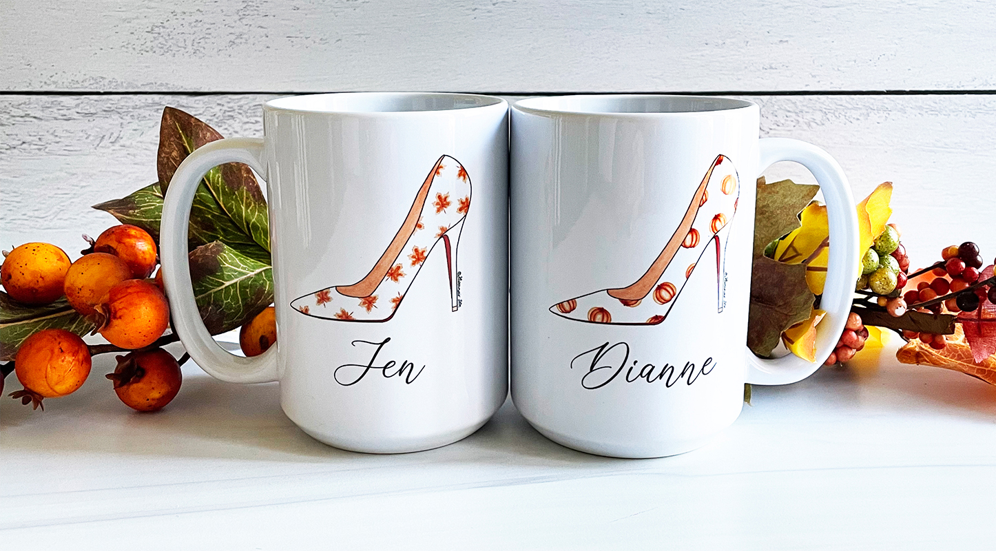 We have to start with probably our favorite item on the list. How cute are these mugs – and how perfect are they for the fashion lover?? These mugs are also available without personalization. Spoiler alert: She has them in Christmas themes too, which could be dangerous. These are perfect for you or as a gift! These designs come in art prints and note cards as well.