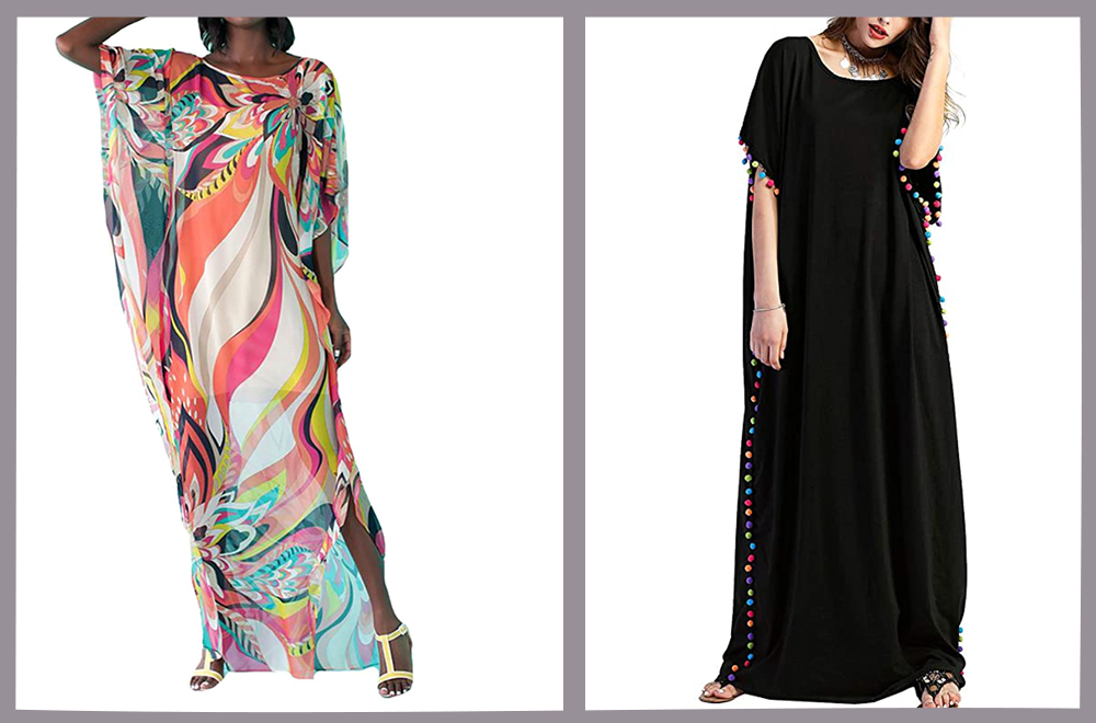 Right: Pom Pom Trim Caftan, $28.99 on amazon.com