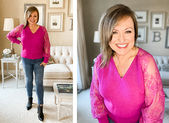 I love my magenta top that I got on Amazon (first in carousel below). I had to take a close up so you can see the sleeve detail.